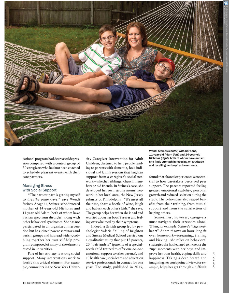 National PR coverage includes an article in MIND Magazine by Scientific American about caregiver issues.